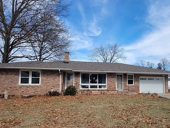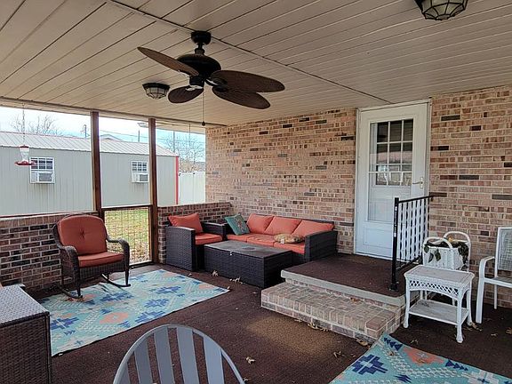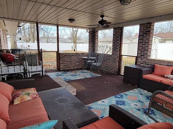 Situated on .41 acres with a fenced in back yard, covered patio, 2 storage buildings. New roof within the last 2 years, new carpet 2025 in bedrooms, new air conditioning unit 2024. Inside this sprawling ranch you will love the 20 x 20 living room with the brick fireplace as the focal point, adjacent is the open kitchen/dining area. Lots of counterspace and cabinets, built in hutch as well (appliances included)! There is a flex room with an additional exterior front door, 2 full updated bathrooms, laundry area, and large utility room. All three bedrooms are generous sized!