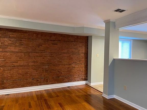 Spacious 2 bedroom and one full bath ground level apartment located in downtown Westminster area. This luxury unit includes a range, refrigerator, dishwasher and microwave. Plenty of counter and cabinet space in kitchen. Large living room has exposed brick wall with original hardwood floors and gas fireplace. Bedrooms are on opposite ends of the apartment and both a respectable size each with a double closet. Mirrored sliding doors to closet in secondary bedroom Beautiful exposed brick walls in open bath area with stand up shower, spa tub, pedestal sink and large double linen closet. Heat pump and central air. Beautiful outdoor zen garden for quiet evenings. Shared laundry with two washers and two dryers. Street and off street parking is available. Tenant pays BGE, water, sewer and cable. Owner includes use of laundry - this is not coin operated. NO SMOKING/May allow a cat with pet deposit $1,350.00 per month $1,350.00 security deposit Application fee required 18 month lease required Owner includes water for laundry and laundry is not coin operated. Tenant pays BGE, water, sewer and cable. NO SMOKING - May allow a cat with pet deposit
