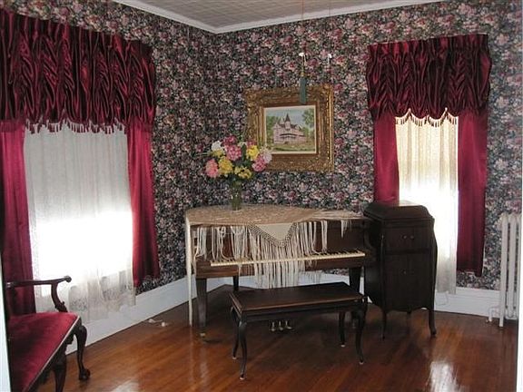 Classic Queen Anne Victorian with wrap around porch on front and enclosed porch on the side. Foundation walls are 18" thick stone. A three story round turret with curved glass windows also has a second story porch. Front & back stairs. There are 3 one piece 5' pocket doors on the main floor. Elegant natural open stairway. There are a number of stained glass windows. The garage/shop is heated, cooled, has a fireplace, is wired for cable & phone, and could be converted into a mother-in-law quarters. Fold down stairway for garage attic. Electric is 110/220 & is heavy duty for welding. Garage currently holds 3 cars, but could be converted to hold 6. There is 200' of unique iron fence with 2 gates on the street sides. New tilt-in windows. Professionally painted exterior in 2008. Lots of love and care have gone into this property. Most furnishings will stay.