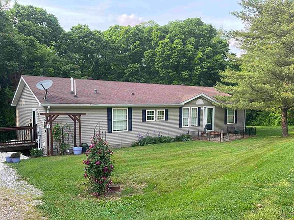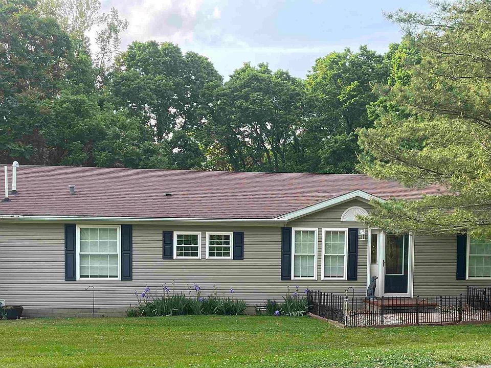 Privacy, Acreage and Location! This home has had one owner and has been meticulously maintained. Over 3 acres of land with lots of woods behind the home. If you need an area of your own to camp, hike, hunt, and enjoy nature, this property is it. Nice, large living room area with vaulted ceilings, open kitchen with island and pantry, 3 bedrooms, 2 full bathrooms with split-bedroom design. Master bedroom/bathroom suite with 2 sinks, garden tub and separate shower. The amount of storage space in this home is abundant. Per the owners, this home was made with more substantial 2x6 exterior walls and an upgraded insulation package and has been a very energy efficient home. Recent updates to home: all of interior painted in 2021, new Masland Stainmaster Pet Protect Luxury Vinyl Tile flooring throughout home in 2021, new A/C unit 2020, new toilets in 2021, Water Heater in 2022, wood deck 2022. Roof is approx. 10-12 years old. The sellers are including all kitchen appliances as well as washer and dryer with the sale of the home. City water and Septic.