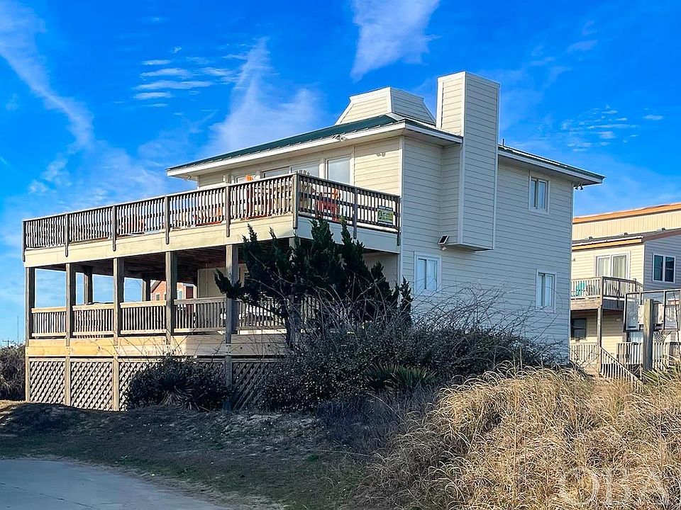 Steps to the beach in South Nags Head!This turn key, updated 4 bedroom,2 full bath reverse floor plan house is located in High Dunes at the 19.5 milepost in peaceful South Nags Head.The ocean views from the expansive deck and open main level floor plan are a must see! Beach Glass offers sweeping ocean views and easy beach access.The main level includes an open kitchen with stainless appliances and granite countertops, living area,seperate dining area, remodeled full bath and washer and dryer.The 2 walls of sliding doors open to the deck, offering stunning sunrise views over the Atlantic Ocean and sunset views over Pea Island National Refuge. All new living and dining room furniture in 2022 as well as beautiful new outdoor furniture on the top deck.The 4 bedoroms on the lower level are all equipt new smart tv's,two of the bedrooms have doors that step out to the mid level deck(added in 2021) and hot tub.The 2nd full bath is also on this level.The new deck is a great place to relax and unwind after a day on the beach.All of this and a maintenance free Aluminum Standing Seam Metal Roof with custom tinted skylight. Plenty of parking,and even another area to hang out, under the house.The outdoor shower and storage closet are also located here.Additional updates in 2022 include, ductwork professionally cleaned and sanitized,new glass and rollers on main level sliding glass doors. 2021 updates include, mid level deck, new hot tub, septic pumped, hot water heater.New 14 Seer American Standard Heat Pump(2019)new breaker box(2018)Currently in a rental program and was booked for 21 weeks in 2022(owner block on all other weeks)potential for more.Don't miss this well cared for turn key gem!