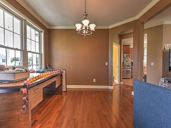 Beautiful home in E. Pointe. Quality throughout with 9' ceilings. Hardwood floors and oversized woodwork. Everything you need on one floor; master bedroom, laundry, oversized garage, and eat in kitchen. Master bedroom has tray ceilings, walk in closet and large bath with jetted tub and separate shower. Living room has fireplace with gas logs. Unfinished basement. Private rear deck.