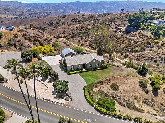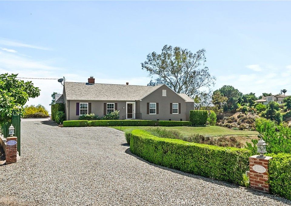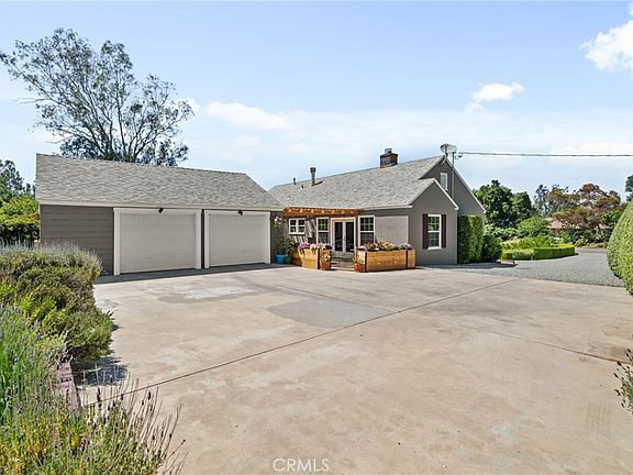 Nestled off Redlands iconic Sunset Drive in the picturesque hills of South Redlands, this charming 3 bedroom, 2 bathroom home on almost 3 acres with several citrus trees, offers a serene retreat with breathtaking views and luxurious amenities just 5 minutes from Redlands Country Club and sought after Mariposa Elementary School. Step into an open and airy living room and dining room with Crown Molding, bathed in natural light from large windows and gorgeous restored hardwood flooring throughout! The updated kitchen features modern appliances, sleek countertops, and ample cabinet space, perfect for family dinners and entertaining guests. In the hallway there is access to a large attic area with pull down steps, offering additional storage or potential for future living space. The spacious primary suite boasts a private sanctuary with a spa-like bathroom, complete with a soaking tub and separate shower offering a peaceful escape at the end of the day. You will appreciate dual closets as well! Two additional bedrooms and another remodeled full bathroom provide comfortable and private accommodations for family or guests. Right outside is a covered patio, ideal for al fresco dining or simply relaxing while enjoying the tranquil surroundings. Bordered with multiple garden beds filled with gorgeous flowers, complimenting the stunning views behind them. The expansive backyard is an entertainer's dream, featuring a sparkling spa strategically positioned to take advantage of the mesmerizing views. RV parking and a detached garage offer convenience and ample storage. This home combines the beauty of nature with the convenience of modern living, making it a rare find in the Redlands hills. There were professional plans at one time offering the opportunity to expand the residence to the garage space to add square footage and capitalize on the views as well. Experience luxury, comfort, and breathtaking views in this remarkable property.