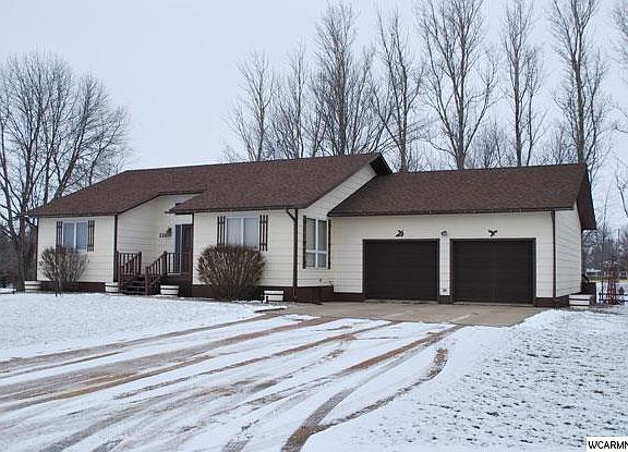 Convenience of a small town, but feels like the country. 3 bedroom, 3 bathroom home sitting on large lot on South edge of town with 3 adjacent lots. Beautiful yard with separate outdoor screened porch perfect for spring, summer, and fall evenings. Home has new flooring throughout- remodeled and updated bathroom on main floor with whirlpool tub and room for washer and dryer. Huge front foyer with vaulted ceiling and open stair case to basement. Finished basement with gas fireplace. 3 main floor bedrooms. Master bathroom. Extra high ceiling in basement. Very nice home.