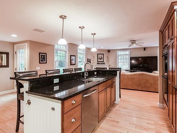 Beautiful home on gorgeous 3+ acre lot--stones throw to Eames Way School. Kitchen has top-of-the-line cabinets, appliances, etc.--opens to lovely family room with maple floors and gas fireplace. 3 bedrooms and a great room with full bath (4th bedroom/in-law potential). Baths updated. Inviting heated pool and pool house with electric & cable. Brand new pool liner and heater for pool last summer (pool opens mid-April and closes early Nov. thanks to the heater). Outside has a year round Jacuzzi and sauna. Nicely landscaped, stone patio, outside shower, totally fenced. Unfinished basement is painted and has plenty of space. There is currently a pool table, ping pong table, foosball table, bubble hockey, 65 in. mounted TV, hockey shooting area, and gym/workout area down there. Great location near beaches, shops, commuter rail. Anderson windows, built-ins, air tub, ceiling fans, & more. This is a great family home that won't last on the market for long! Set up a showing today!