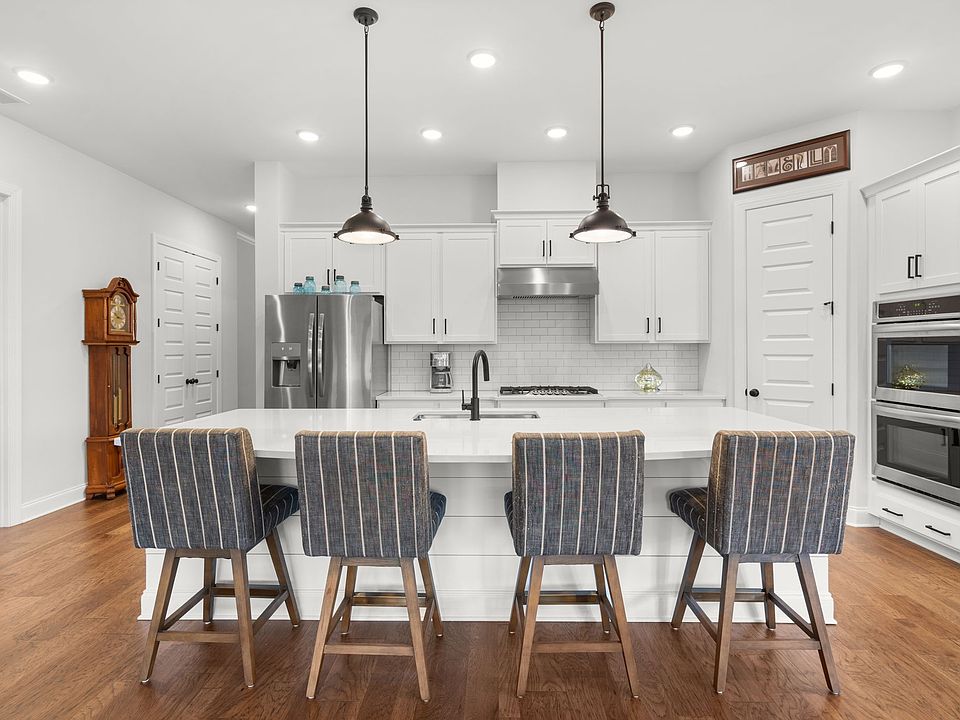 Preferred lender to offer 1% lenders credit as well! Video in media! ONE LEVEL home with 4 bedrooms and 3 baths, hardwood floors, open floor plan, custom window treatments, oversized island,has an guest suite and lots of natural light, gas cooktop, screened in back porch, tornado shelter in garage stays too many to list! MOVE IN READY! Event coordinator on site, dog park, pool, splash pad, state of art work out gym, food trucks every Friday, and many walking trails. Minutes to shopping and the interstate! Everything you need is right here
