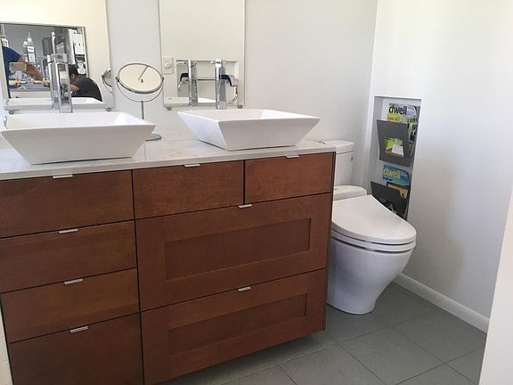 Modern home (approximately 1200 sq. ft) with lots of windows and filled with natural light. High-end appliances, Bosche Dishwasher, Cesar Stone counter tops, bidet toilet. Tile and bamboo flooring throughout. Surround sound and custom lighting throughout. Downstairs is open concept kitchen, living room, and dining room, and half bath. Upstairs are 3 bedrooms and 2 bathrooms. Master bedroom with ensuite and double head shower, double sinks. 2 bedrooms share a bathroom with double sinks and tub/shower combo. Attached garage with full sized washer/dryer and deep freezer. Private patio attached with new fence. Grassy area right outside of private patio. Renter responsible for utilities except trash. No smoking, no pets. 1 garage parking and 1 designated outdoor parking space, parking is very limited in surrounding area, 2 cars max. Quiet community. Must earn 3x the amount of monthy rent: to afford a $4,500 rent with a 30% rent-to-income ratio, you need a gross monthly income of $15,000. Proof of income required. .