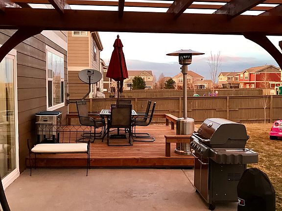 Enjoy the charming front porch and enter the living room with new hardwood flooring and view the two-sided fireplace. Light and bright open floor plan. Beautifully maintained home you have many high-end upgrades. Kitchen has granite countertops and cabinets. tile floors, stainless steel appliances and flows into the dining room and family room area. Sliding glass door to a large back yard. Perfect for entertaining with an extensive patio and cedar pergola. New storage building attached to the house. Master suite boasts remodeled 5-peice bath and walk-in closet. Additional upstairs has three large bedrooms, loft/bonus area and full bath*Upgrades*lights*faucets*new paint*hardwood floors*ceiling fans*security system*drywalled heated garage with floor coating. Wi-Fi controlled thermostat, garage door & security alarm. Desirable Castlewood Ranch neighborhood and excellent schools. Parks, Mitchell Canyon hiking trails, community pool, tennis courts and easy access to downtown Castle Rock.