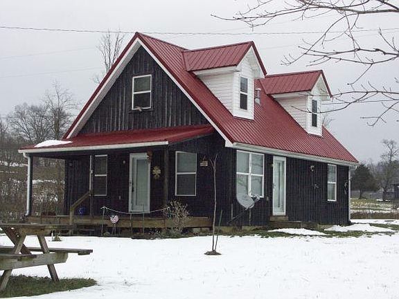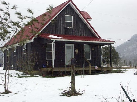 Enjoy sitting on your front porch with pasture and mountain views. This newer home was built with a rustic feel to fit into its farm setting complete with a red tin roof. This three bedroom one bath home has beautiful hardwood flooring on the first floor. Several outbuildings to store equipment to work the land which includes a garden area adjacent to the house and two large cleared pastures/fields suitable for horses, cattle, or growing crops. Lovely fishing pond situated between the two main fields... All sitting on 9+ acres.