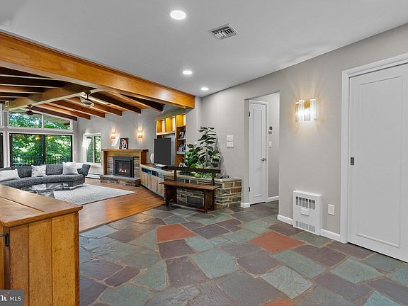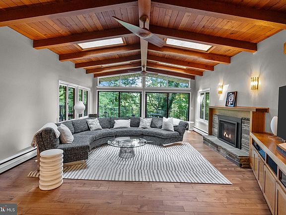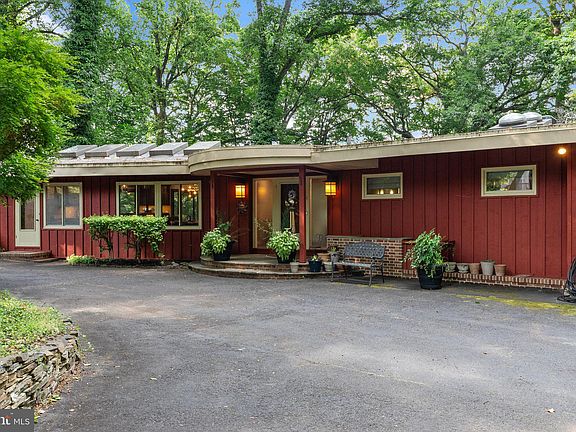 A Frank Lloyd Wright inspired design, this one -of- a- kind mid-century modern contemporary ranch is one of the most unique homes in Yardley. It was featured in a 2017 issue of Philadelphia Magazine as “one of the 6 coolest homes in the Philadelphia suburbs”. It is easy to fall in love with the charm evident in every aspect of this property. Follow the long tree-lined private driveway to find the home nestled on a wooded hillside overlooking the Delaware Canal. You’ll also find the oversized detached 2-car garage, perfect for an auto enthusiast. When you open the front door, you’ll feel the authenticity of the design. You are greeted by a slate foyer, a retaining wall housing an indoor garden, and a magical great room with natural light pouring in from the large windows, sliding glass doors, and six skylights in the vaulted ceiling. This room was completely renovated and now boasts beautiful hardwood floors with in-floor lighting, gas fireplace, new light fixtures, two ceiling fans, and built-in entertainment center. All four bedrooms on this main level as well as the long hallway along the east wing of the home have undergone a complete renovation. New hardwood flooring, recessed lighting, closets, and laundry room were completed in 2022. All bedrooms overlook the woods and the Delaware Canal. There are two full bathrooms and a connected half bath on this level. Four sun tubes bring natural light into the hallway and bathrooms. The large eat-in kitchen is both stylish and functional. It provides plenty of space for food prep and cooking as well as a breakfast bar with seating for six along the curved granite peninsula. Five skylights, large sliding glass doors, and built-in cabinets and granite serving counters add to the aesthetic of the dining area. Exit the sliding doors to a screened in patio to enjoy the calming view with your morning cup of coffee. Two radiant heaters provide comfort on all but the coldest days. The rear wraparound deck is truly spectacular. Here, surrounded by mature trees and specimen plantings, you can indulge in the feelings of peace and embrace the nature that surrounds you. This is the ideal place for hosting cocktail parties or family gatherings. The lower level offers a flexible space that could be used as a second living area. Several separate entrances, a living room area with a pool table, a large bedroom now being used as an office, a kitchenette, a bathroom with a soaking tub, and a beautiful brick patio lends itself to an in-law suite, au pair suite, or guest quarters. The current owners updated the major systems in 2018. They replaced two electrical panels, installed a natural gas -powered whole house generator, installed two new chimney liners, replaced the boiler, circulator pump, and the primary copper piping for the 6-zone hydronic heating system as well as the hot water heater. We are proud to present you with this rare opportunity to own one of the most unique properties in Bucks County.