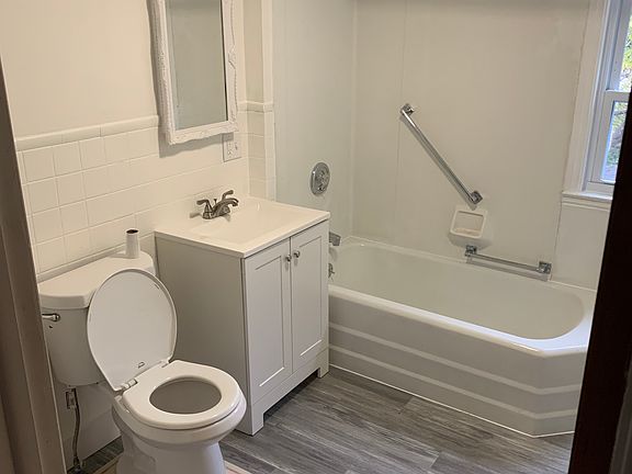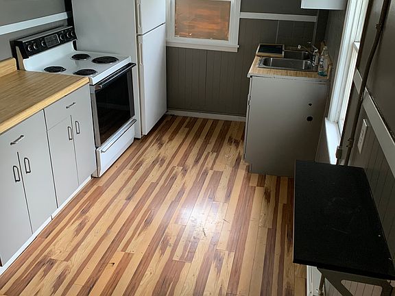 New floors. No paint. New bathroom. New entry door and locks. New front porch. No pets. No smoking. First months and security deposit due at signing. Tenant responsible for gas (hot water), electric (including heat) and snow removal. Landlord provides lawn care, water and sewage. Month to month lease. Tenant responsible for gas, electric and snow removal.