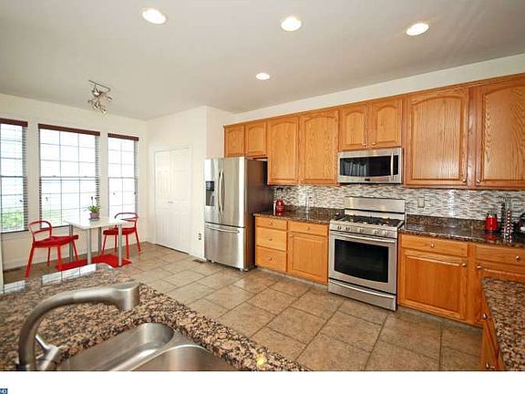 Lake views in a community complete with walking and biking paths. Walk to restaurants and shops. This house has it all. Stunning exotic Brazilian wide plank floors in a fabulous open floor plan and custom wood trim. Bright and light spacious family room with lake views is warmed by the gas fire on a cold winter day. The main floor 5th bedroom offers flexibility of lifestyle. The expansive open eat in kitchen boasts 18 inch tile, 42 inch cabinetry and granite counters with access to the large composite deck. Outside entertaining is a retreat with a relaxing hot tub and lovely plantings. Upstairs the master suite with views of the lake has a walk in closet and an updated en-suite bath. 3 guest bedrooms share an updated hall bath. The 4th bedroom is currently used as a dressing room but is easily converted with the removal of 2 rods into a true guest room. Easy access to major roads, train to NYC and Philadelphia.