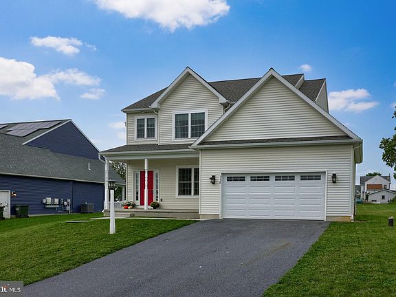 OPEN HOUSE: Sunday Oct. 13, 1 - 3 PM. Nearly New! Built in 2020. Best of both worlds with rural setting yet close to schools/shopping/major roads. Beautifully finished basement in 2023 (poured concrete), powder room, radon PVC pipe in place (no fan) complete with Speedwell egress window. 30 yr. architectural shingle roof, FP w/ Gettysburg wood mantel/black slate hearth, 9' ceilings 1st floor, full window screens & grilles between Low-E glass, tile shower/walls & base in primary bath & raised panel doors/drawers w/ pewter knobs, GE stainless steel kitchen appliances & granite island. Large bright rooms throughout, ceiling fans, lots of storage, solid built deck in 2022, 300 ft' deep well, all carpet freshly shampooed & exterior power-washed, roughed in plumbing for water softener. Turn-key & move-in. Come home today to 110 Fairhill Drive!