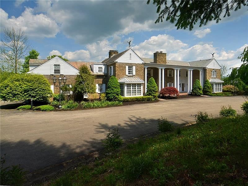 This splendid estate sits majestically on 77 acres in Ligonier Township. Richly appointed, this six bedroom home, six bath French Country Stone boasts formal and informal living space. The magnificent entry with a grand staircase and marble floors introduces the main level, which includes a living room, dining room, library, den and kitchen. The second floor living space includes four spacious en-suite bedrooms and two additional bedrooms with a shared bath. Lighting fixtures include antique crystal chandeliers and matching sconces. The lower level includes a game room with a beautiful stone fireplace, full bath with sauna, plus a wine cellar. Additional amenities include a three car attached garage, French garden, stables and stones terraces with amazing views. Library measures 40x22, with it rich wooden panels, it features a marble fireplace, with brass chandeliers and scones and exceptional built-ins.