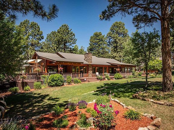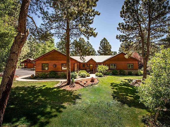 GOLF COURSE!!!! This FABULOUS single story, custom home on the GOLF COURSE (Ponderosa hole 7) and a TRIPLE LOT( yes, 3 lots combined into one) makes this an incredible find. Close to everything and the attention to detail is above and beyond. Where hot air balloons fly overhead and newborn fawns are curled up next to your porch. From the moment you walk in, it feels like home, so inviting and made for entertaining, ask the neighbors they all love getting together. Starting with the slate entryway and a welcoming craftsman style front door. This is a 3 bedroom plus bonus room/ den plus office. The living room ( with a sliding glass door), dining room (with a sliding glass door) and to the kitchen (with it's own door) create an open concept. The flooring in the home is a solid Hickory , yes, true hardwood and we have plantation shutters throughout along with beautiful window coverings...just gorgeous. The gourmet kitchen has plenty of counter space with granite countertops. The Alder cabinets have pullouts and many have glass doors with lights inside and under cabinet lighting which I love plus a full pantry. There is a built-in wine cooler and a wine rack. All stainless steel appliances and a window over the sink with a beautiful view of your landscaped backyard. The master is on the far side of the home and has a large walk- in closet. It's en-suite has double sinks, jacuzzi soaking tub and a large shower. The Master bedroom also has a sliding glass door leading out to another section of the oversized deck, this portion is covered making it wonderful to sit out and relax before heading to bed or enjoy coffee in the morning. Leave your slider open and let that cool summer breeze lull you to sleep. The guest rooms are on the opposite side of the house and share a jack-n-jill bathroom. The dining room leads to the oversized deck and believe me this backyard and deck are amazing with peak-a-boo views of Pagosa Peak. Backing to Ponderosa's 7th hole, this home is tucked back into the trees and the lawn and flowers are exceptional. this was professionally landscaped , filled with perennials and irrigated with 17 Rain bird zoned sprinklers, a drip system for hanging baskets/plants, low voltage path lighting and of course, your hand carved bears and our American Flag with solar and path lighting for the evenings. During the day the hot air balloons practically land on the course behind you, what a fantastic site. Low fencing for smaller dogs and pathways lead to our custom deck with approx. 616 feet covered and the total deck equals approx.2500 sq feet with 2 natural gas quick connects to your BBQ which is also under cover. This leads down to the natural gas firepit and continues to your private jacuzzi. This is so gorgeous especially at night with all the ambient lighting. Because this is a triple lot the grand finale is that portion of the 3rd lot that is for parking your RV or trailer. This also has a sewer clean-out for your RV. There are 3 outbuildings 2 for storage and as we go back to the house, the attached, heated garage is a 3 car oversized with plenty of room for your toys, an epoxy floor and plumbed for hot and cold running water. Next to the garage is a detached 16 x 22 fully insulated & heated custom workshop/artist gallery with hot & cold running water, telephone, cable and built-in shelves / cabinets. The owner's have thought of everything on this home including the copper gutters around the roof line. When you buy in this area this home has paved roads all the way into your garage and we are part of "PLPOA" allowing you to join the Rec Center if you'd like. This home is one of a kind and you have to see it & spend time enjoying the finer points of excellent craftsmanship. Make sure this is on your list, you'll be glad you did.