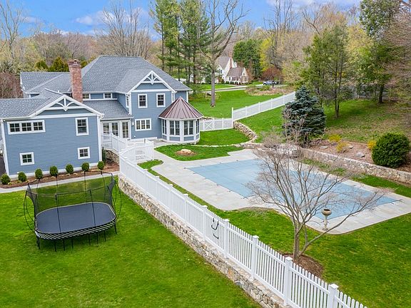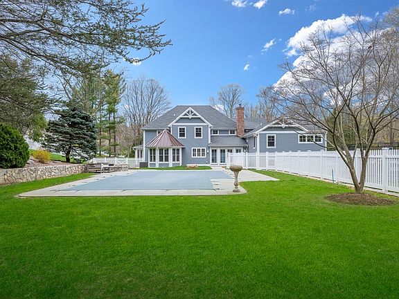 Masterfully designed 2017 colonial on coveted cul-de-sac set privately in prestigious lower Greenfield Hill. Sited on 2 beautiful landscaped acres w/stone walls, mature plantings & oversized wraparound front porch. State-of-the-art interior custom crafted with exquisite details offers an environment, both exciting and peaceful, in which to live and entertain. Dramatic double height entryway and floor to ceiling windows let in amazing light. Beautiful oversized moldings, decorative ceilings and 4 fireplaces give a rich customized look. Gourmet Chef's kitchen is beautifully appointed with all the latest in stainless steel appliances and Quartzite countertops adjacent to the family room with fireplace surrounded by shiplap detail. Sensational sun filled octagonal breakfast room overlooks secluded back lawn views with Expansive gunite pool surrounded by bluestone. Ultra-stylish design offers 5 bedrooms 5.2 baths with over 6500sf of living space blending timeless traditional architectural elements with stunning modern aesthetics. Elegant dining room; paneled home office with beautiful built-ins, butlers pantry & outdoor firepit. Private guest or staff suite on first level. Revel in the sensational primary suite w/fireplace and ultra luxurious bath. Huge bonus room offers options to create endless possibilities for exercise room, billiard room and rec space.. Finished lower level perfect for a home theatre and au pair or in-law suite. Mins to train, schools, restaurants & shopping.
