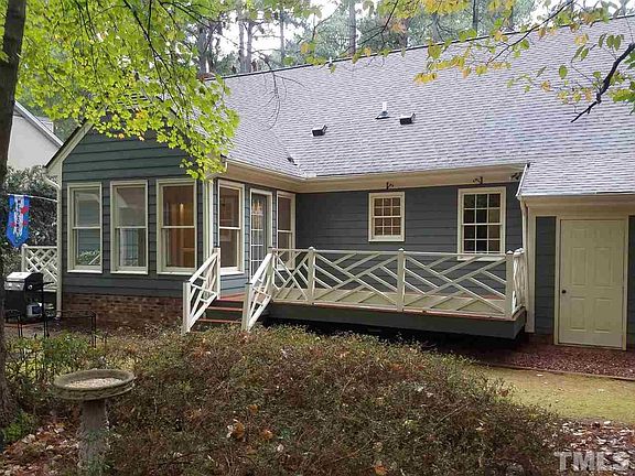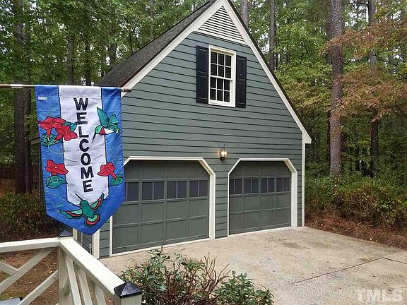 Adorable cap cod on .48 acre wooded lot.Two car detached garage with attic. 3 bedrooms down and 2 upstairs. One bedroom could be used as bonus with built in book cases. 3 full baths.Wood floors in dinning and family room. Great floor plan w/master down. Home and carpets have been professionally cleaned.Stainless Refrg/W&D convey. Pull down attic.Attractive neighborhood with lots of trees. Short drive to shopping, schools and downtown Cary. Storage. A little TLC and this home will shine like new.