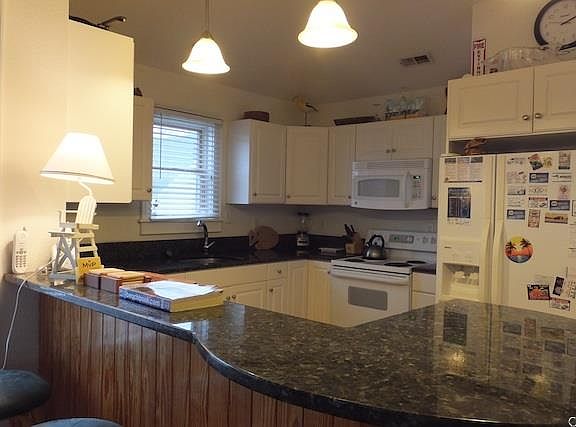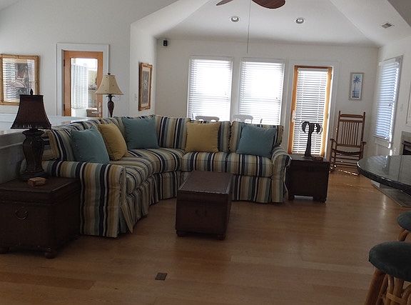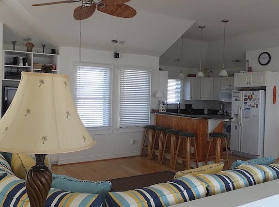 Island Dream is a perfect beach getaway. The home can be described as "charming" with it's new exterior paint colors; "classy" with the interior custom decor; "upscale" with the beautiful custom tile floors and bathrooms;" fun" with the private pool, hot tub and game room; and "relaxing" with ocean & sound views and breezes from the ships watch. Pebble Beach Shores HOA has a private beach access with wooden walkway & dune deck. The home is located close to the beach and within walking distance to Jeannette's Pier, restaurants, The Outer Banks Event Site, shopping, the multi-use path, the Nags Head Public Sound Access and many amusements such as putt-putt, water-sports & race cars. The landscaping accents the home and rear patio where the grill, hot tub, pool and outside shower are located. There are multiple decks to enjoy the sun or shade and the separation of the ships watch from the main living area provides you with a quiet reading spot - open the windows and feel the ocean breeze! On the ground level you have a tiled entry and hall leading to a game room with a wet bar, microwave and small refrigerator for entertaining, a half bath, two bedrooms and bath with jacuzzi tub/shower. The stair case has recessed lighting and polished wood accents. On the mid-level you will find a beautiful custom tiled foyer, one master bedroom/bath and two additional bedrooms with adjoining bath plus a laundry room. All bathrooms have custom tile work and state-of-the-art fixtures. The top level of this reverse floor plan home has hardwood floors throughout the living area, a large dining area, living room with a gas fireplace and a separate area for games & puzzles. Also on this level is a half bath and another master bedroom/bath with a walk-in custom tiled shower. Island Dream is fully furnished and provides all the comforts for you to enjoy for many years to come. Just open the door and relax.