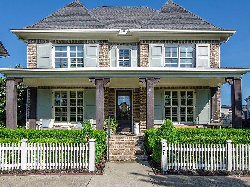 Premium lot with 5 beds, fenced large yard AND common area in front! Front porch and screened in back porch. Master down and guest bed down with 3 more beds upstairs and bonus room-versatile floor plan!! White cabinets in kitchen/granite/tile backsplash. Tastefully decorated. Brand new bath upstairs. New paint and lighting. WALK to shops and school