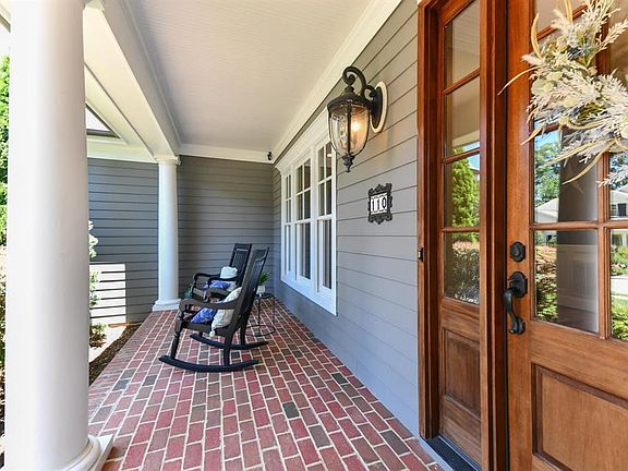 Stunning, custom built home with excellent craftsmanship located in the desirable Chapel Hill/Carrboro school district yet without city taxes. Tucked away in the idyllic, private neighborhood of Chancellors View that still feels like it is around the corner from so much Chapel Hill and surrounding area has to offer. An inviting southern front porch welcomes you as you enter the stunning Mahogany front door leading into the open foyer, formal living room or office/study with plantation shutters, dining room and great room with soaring coffered ceiling, gas log fireplace and built-in cabinetry. Refinished Brazilian Cherry Hardwoods throughout the main living areas. First level and outdoor sound system. The spacious chef's kitchen offers top of the line stainless steel appliances, granite counters, tile backsplash with undermount lighting, a large center island with copper sink and abundant cabinetry. The breakfast area has French doors leading to the amazing screen porch with wood burning fireplace, tile flooring and cathedral ceiling. The main level primary suite features an ensuite luxury bathroom with jetted tub, walk-in shower, double vanities and walk-in custom closet. Front and back staircases lead to the 2nd floor where you have a large bonus room with French doors and bedrooms 2, 3 and 4 all ensuite with large custom-built closets. The 3rd level offers the 5th bedroom, full ensuite bathroom and a second bonus/theatre room. Could also be used as an at home office. If you work from home, this house is perfect with three different office areas. Updated laundry room with sink and lots of storage. Interior has been recently painted throughout and all carpets were replaced within the last year. Wonderful level lot backs up to a private wooded area with an extensive 932 sq. ft. custom stone patio complete with firepit and mature landscaping. Side entry 3 car garage with sink and new doors. Excellent location just minutes from UNC & Hospitals and a quick commute to Duke, RTP and RDU. At the end of the cul-de-sac there is a walking trail leading to Southern Village. Listing agent is related to the Seller.