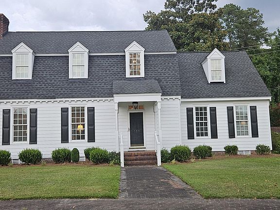 Recent updates include new exterior paint 2023, upstairs carpet 2020, new windows 2018, tankless water heater 2016, new kitchen appliances 2021, downstairs hvac/gas pack 2017, gas logs 2022, main roof 2012, and porch roof 2023.