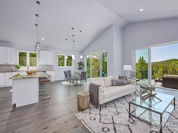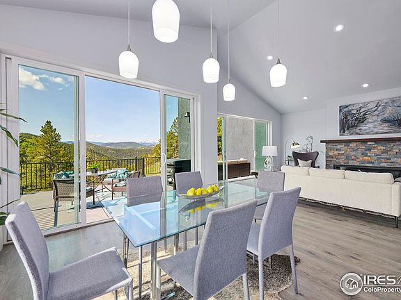 Welcome to this brand new stunning contemporary custom home with breathtaking views of Mt Evans and the valley. The exterior boasts stucco and dry stacked slate, exuding modern elegance. Step inside and discover the incredible features this home has to offer. The spacious living room features a 5' gas fireplace and soaring 9' vaulted ceilings, creating a warm and inviting atmosphere. The gourmet kitchen boasts stone countertops, stainless steel appliances, and ample storage. Glass doors open to an expanded concrete deck where you can enjoy the magnificent views. The main floor includes a luxurious primary bedroom with a private deck and a 3/4 bath. Another room can be used as a second bedroom or study, with a convenient 3/4 bath. A practical mudroom with a washer and dryer is located at the main entry. The lower level offers two additional bedrooms, two baths, and a private infra-red sauna for relaxation. There's also a 10 ft ceilinged recreation room with a wet bar, pool table, and card table. A glass-enclosed solarium houses a 6-person hot tub for ultimate rejuvenation. The home features Pergo Timbercraft flooring upstairs, carpet downstairs, and radiant floor heating throughout. It includes an oversized 2-car garage with additional 815 sq ft storage space below. Living in the Missouri Lakes community provides access to various recreational activities for a $100 annual fee. Enjoy proximity to casinos, ski resorts, hiking trails, and biking routes. Embrace mountain living at its best!