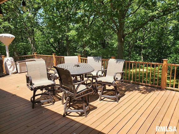 Welcome to a little bit of country right in the city of East Peoria. Three bedroom all brick ranch home sitting at the end of quiet cul de sac on approximately 1.68 acres of land with beautiful large oak trees and abundant wildlife. Totally remodeled kitchen in 2018 with large 9ft island with raised breakfast bar that easily fits 6 bar stools. New engineered hardwood in the kitchen, dining, hallway, and entry way. Patio doors off the informal dining room leads to the 16x32 composite deck overlooking the spectacular peaceful backyard. The great room has been updated with a brand new bay window and has a gas fireplace to stay warm during those cold winter nights. Large walk-in closet in Master. Full finished walkout basement with full bath and woodburning insert. Extra insulation in attic in 2018. 2 stall attached garage and a brand new 3 stall detached 30x40 insulated and gas heated garage that is partially plumbed for a half bath for all those car/workshop enthusiasts.
