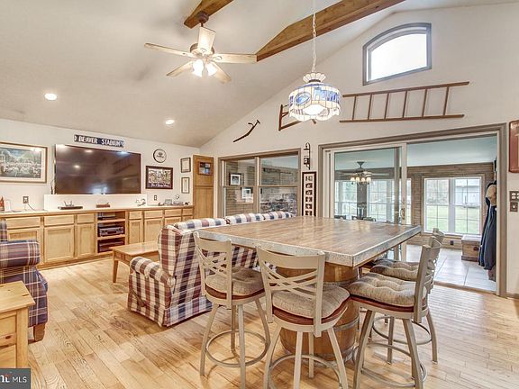 You must see inside this charming Cape Cod with incredible additions offering wonderful open living space situated on nearly 3/4 acre lot including an amazing detached 960 sf 3 car pole building + 420 sf block shed *Entertaining and family gatherings will be a joy in the Family Room highlighted by beamed cathedral ceiling and wall of built-ins with area for the biggest TV you can imagine! *Kitchen offers abundant cabinetry, 2 sinks and bay window overlooking private yard *Sunroom addition boasts tile flooring, built-in bench, and stone wall with electric fireplace *1st floor Master BR + 2 additional BR on 2nd floor *Take entertaining outdoors to the expansive covered deck and patio, firepit + fenced yard too! *Updated furnace & CAC, windows, garage door and more!