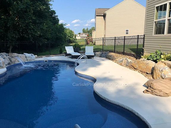 Nestled in the charming community of Carlisle, Pennsylvania, 110 Fuller Way presents a delightful single-family home for rent. This inviting residence offers four bedrooms, 3.5 bathrooms, and 3,278sqft of comfortable living space, perfect for families and individuals seeking a peaceful and convenient lifestyle. Inquire or Google CarlisleDave for full details Parking is ample with on-street space, a private driveway, and a two-car garage. Entering through the foyer, you'll be greeted by a warm and welcoming ambiance, with a view of the second-floor hallway. The well-designed floor plan seamlessly connects the living spaces, creating an ideal flow for entertaining and everyday living. The living room provides a cozy haven for relaxation, featuring a gas fireplace and two windows overlooking the back yard. The adjacent breakfast nook, kitchen, and sunroom offer a perfect setting for casual gatherings, while the formal dining room provides a more elegant space for dedicated dining. The kitchen is a chef's delight, equipped with modern stainless steel appliances, including a two basin sink, gas range, dishwasher, and double door fridge with bottom freezer. There is ample, stylish counter space around the range and on the island. A half bath and closet space complete the first floor. Upstairs, the master suite is a true sanctuary. Double doors lead to this spacious retreat, featuring a dedicated ensuite bathroom with a walk-in closet. Three additional well-appointed bedrooms offer flexibility for family, guests, or a home office. A full bathroom is conveniently located central to bedrooms two, three, and four. Outside, a well-maintained yard provides a serene outdoor space. The backyard patio is perfect for al fresco dining, and the gas-heated inground pool, with its natural, curved design, waterfall, tree-lined backdrop, and rock features, creates a personal oasis. The beautifully finished basement offers even more living space, including a pool table (included) and ample room for storage, a home gym, or man cave / she shed. This charming rental home at 110 Fuller Way offers a unique opportunity to experience comfortable and convenient living in Carlisle, close to everything downtown Carlisle has to offer, Boiling Springs' Children's Lake, and easy access to the PA Turnpike (aka I-76) and I-81. Sorry, NO smoking. Animals may be considered, subject to owner approval. Tenants will be required to provide up to date vet records, flea medicine receipts, and licensing documentation when requested. An increase in rent and/or an additional refundable deposit may be required. Full details at CarlisleDave dot com. All information is deemed reliable but not guaranteed. Rental and management services are offered by Dave Fleming, a Pennsylvania Realtor #RS300174 through Distinctive Property Management, LLC as Real Estate Broker #RB070109.