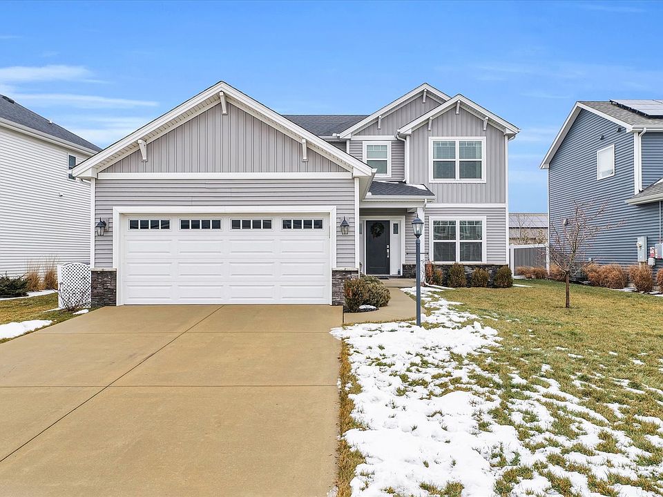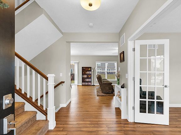 This 4 bedroom 3.5 bath with finished basement is sure to catch your attention! This immaculate home boasts an open first-floor layout, accentuated by hardwood flooring throughout. Cozy up in the living room and enjoy a fire on these cold winter nights with the gas log stone fireplace. The kitchen is a culinary haven! Featuring beautiful LG appliances, a large island with barstool seating, and modern finishes. The office, adorned with French doors, offers a tranquil workspace. The fully finished basement has 1 bedroom and 1 full bathroom and provides versatile space for entertainment or relaxation. The basement was also plumbed for a wet bar, it has 2 sump pumps, and a radon mitigation system installed during the build as a precautionary measure (no high levels have ever been present). Ahhh... Retreat to the master bedroom. The spacious master is adorned with raised tray ceilings and a large walk-in closet offering ample storage space. The attached master bathroom with double sink vanity, custom tile shower, and jacuzzi tub makes getting ready a breeze... but also makes it hard to leave! Experience luxury, detail, and comfort in every corner of this exceptional home.