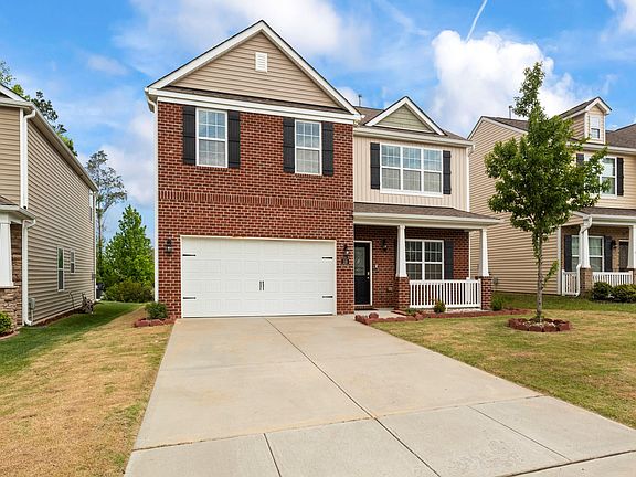 Beautiful 5 Bedroom Brick Front home with 2 car garage! Open and inviting home with guest suite on main floor, Black Granite kitchen counter tops with Espresso cabinets, Almond Tile Backsplash & island. Oversized master bed with large walk-in-closets and vaulted ceiling. For an added touch the 2nd, 3rd and 4rd bedrooms also feature walk-in-closets! Home located on quiet street. Nice flat driveway and rocking chair front porch. Walk in to this spacious home. Dining room on the right. Eat in kitchen flows in large family room. Family room has fireplace. Around the corner is a downstairs bedroom and full bath. Upstairs is very large master suite with dual vanity, garden tub, walk in shower and large closet. All secondary bedrooms are a great size with large closets. Enjoy backyard from patio. There is a natural tree buffer in the back - so no neighbor directly behind you. Enjoy the community pool and tennis! Great location and convenient to shopping and dining.