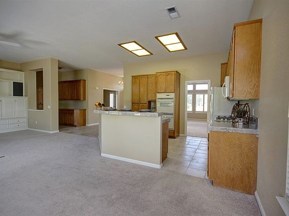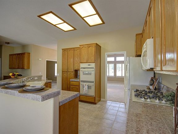 AMAZING LOCATION! Gorgeous views of golf course PLUS lakes. Watch the rabbits and ducks frolic! Rear of house faces East which means morning sun fills the house but you still get afternoon shade. Best of both worlds! Retractable awnings in rear can be operated manually or automatically based on outside temperature. Super-clean and ready to go! Fresh exterior paint. Neutral interior colors. Very light and bright! Plantation shutters on many windows. Ceiling fans stay. Gorgeous floor to ceiling brick fireplace hearth. Built-in entertainment center on either side of fireplace. Popular Pippin floor plan has two true bedrooms plus den. Very open kitchen/eating/family room area. Ample storage cabinets. 2 car garage plus golf cart garage. Bay window in eating area.
