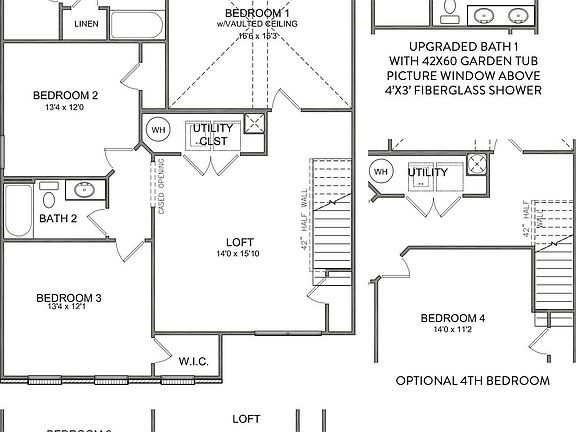 The Bedford Hill by Ball Homes is a open layout floorplan with a walk out basement. The kitchen has Aristokraft 'Flagstone' cabinets, large eat in island, pantry, 'Meteorite' granite, full wall backsplash and comes complete with stainless steel appliances including smooth top range, dishwasher, microwave and side by side refrigerator. Luxury vinyl plank is throughout the first floor. Fireplace with gas logs in family room. Upstairs has 4 bedrooms and 2 full baths. Primary bath has 60x42 garden tub and a 4'x3' shower and double bowl vanity. The home is complete with a 12x10 deck and ½ bath rough-in in basement.