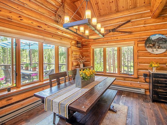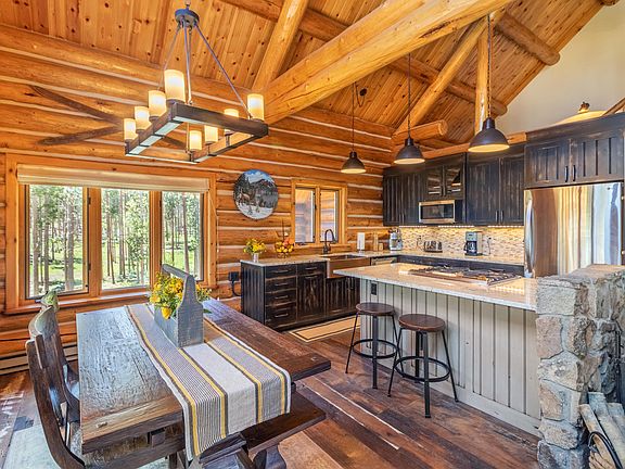 This is the log home you've been dreaming of! The home is nestled in a beautifully treed 2.81 acre lot with views towards Winter Park Resort in one direction and Lake Granby in the other. Sleeps 12 comfortably. There are amazing finishes throughout: reclaimed wood floor in the living/dining/kitchen area; updated kitchen and bathrooms; built in queen sized bunks in the lower level; upper level master suite with private balcony; and a large deck that will be your favorite place to relax or entertain. Homestead Hills is centrally located in the east end of the county, and is part of the Fraser Valley Rec District.
