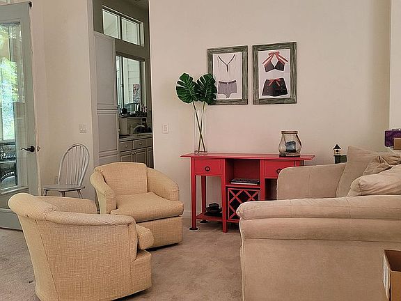 Welcome to the beautiful Webster model home of Sun City. When walking through the oversized doors of this amazing home, you are greeted with amazing tile floors and large, vaulted ceilings that give you a feeling of grandeur. As you enter, you have an amazing view of your backyard through the large windows in the formal living and dining room. These rooms are connected to the four-season Carolina room, and the kitchen. Enter into an all-white kitchen with an island and bar sitting area. The kitchen is part of an open floor plan to the main living and dining, which also has access to the Carolina room. In the main living, you have large windows peering out to the the lagoon and golf course, which backs up to beautiful green trees. The cozy living area has a gas fireplace with floor to ceiling built-ins and a guest bathroom around the corner. The large laundry/mud room has cabinets, a sink, an additional stove, and has room for a refrigerator, desk and more. It also connects to the 2 car garage with a golf cart bay and workshop area. At the opposite end of the house, there are two large bedrooms with walk in closets and en-suites in both. The primary bathroom has a large accessible shower, a water closet, a jetted garden tub and plenty of counter space. The primary bedroom is spacious and has bay windows that bring in lots of natural light and makes a great reading nook. Just off the entry way, is a 3rd bedroom/office with double doors. The bonus of plantation shutters, an established yard, and being at the end of a quiet cul-de-sac make this home a must see, and it is waiting for your magic touch! It will be available mid-September and is available for viewing with an appointment. Give us a call today!