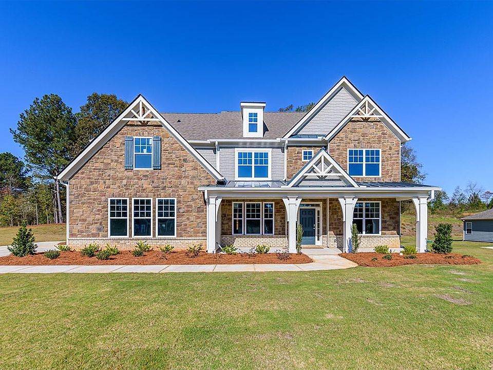 Farmhouse style, Edinburgh floorplan home with double front doors. Sep. dining & living room. Large gourmet kitchen w/ 42" WHITE cabinets, granite c'tops, dbl ovens, and a large island. Kitchen overlooks family room with curved windows and stacked stone FP. Guest bed w/ full bath. Hardwoods throughout main. Media room upstairs. Spacious primary suite w/ deluxe bath. 3 Car Garage. Irrigation system included. SMART HOME TECHNOLOGY. 1 Acre Lot. Located in Genesee, a swim community!
