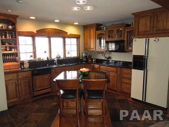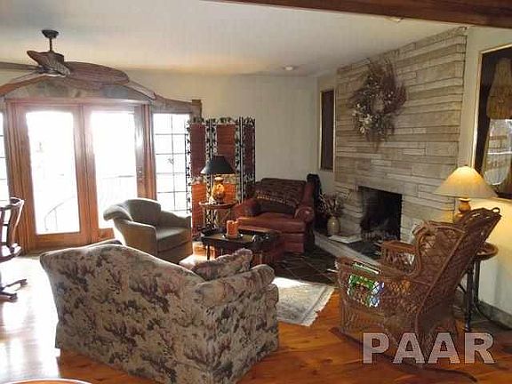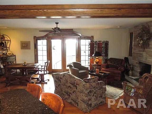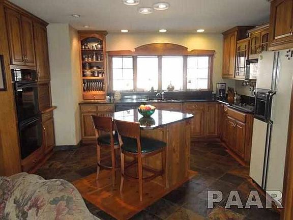 Custom built Noah Herman and Sons, 1 owner home situated on 15 private acres w/1 acre stocked pond & over 8,300 finished sq ft just 10 minutes from downtown Peoria & 3 minutes from McCluggage bridge! Indoor pool area w/hot tub & pool bar. LL theater rm (projection TV system remains), huge game rm & 2nd kitchen. Mahogany wood floor in DR/LR, skylights, cathedral/trey ceilings, sound system, 2 FP's, built-in bookcases & storage throughout. Gorgeous views of river, valley & city! 42x75 Metal bldg.w/utilities & water. Great potential for horse property! Abundant wildlife! Approx. 200 evergreens!