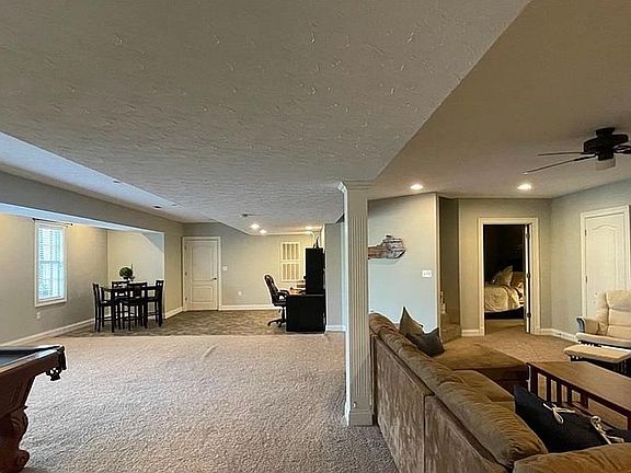Beautiful, spacious home in desirable Hidden Meadows subdivision. Vaulted ceilings, open floor plan, covered back porch, 4 bedrooms with a 5th bonus room in basement. 3 1/2 baths. 3 car garage on main level, 1 additional garage in basement. Safe room in basement, new roof in 2021, new beautiful hand carved hickory hardwood floors throughout main level 2021, above ground pool, house overlooks the pond in backyard (great fishing). Minutes from Green River Lake, wonderful neighborhood. Gas fireplace, laundry on main level, spacious kitchen. Massive storage/work room area in basement.
