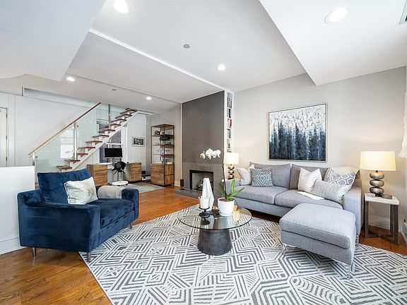 This dramatic duplex condo is set on the two top floors of one of the most unique and elegant buildings in prime Paulus Hook. With nearly 1,600 sq.ft. of interior space, this 2 bedroom, 2 bathroom home (easily converted to a 3 bedroom) features triple exposure (all outfitted with custom Hunter Douglas Shades) and includes two outdoor spaces: a spacious terrace off the main living area and massive roof deck on the top floor. As you make your way to the building’s main entry, you’re transported in time via a lush courtyard adorned with historic New Orleans style ironwork. The home itself boasts a spacious open living area with ample space for the kitchen, living room, dining room and bonus space; the floorplan can also easily be reworked to add a third bedroom in the current dining area. The kitchen features updated gray shaker cabinets with stainless hardware, white quartz countertops, stainless steel appliances, and a unique crescent shaped island that makes the perfect entertaining space; right off the kitchen is the smaller of the two balconies which would be perfect for daily al-fresco dining. The living room boasts the first of two working gas fireplaces and it’s large enough to accommodate a home office; a dedicated dining room is the perfect place to gather for family dinners and to entertain guests. A generously sized bedroom with ensuite bathroom, in-unit washer/dryer, & tons of closet space complete this floor. Continuing upstairs is the expansive primary suite with the second working fireplace, a walk-in closet and an ensuite full bathroom. All of this overlooks a massive private roof deck through a pair of double doors, complete with a gas hookup for the grill, projector screen and tons of space for an outdoor living and dining area. Being in Paulus Hook gives you the luxury of having a short walk to a multitude of transportation options: 2 PATH stations (Exchange and Grove), a Citibike station 1/2 block away, Light Rail and the Paulus Hook ferry within a couple of blocks. The neighborhood features excellent public and private school options close by including top-rated (10 out of 10!) PS 16, the River School, Waterfront Montessori, McNair, and St. Peters Prep. There are plenty of parking options available nearby.