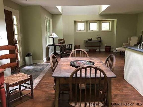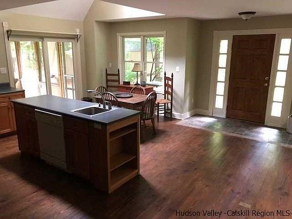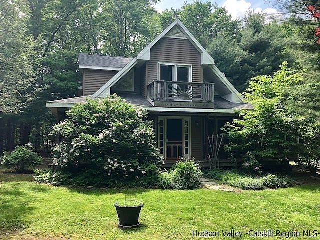 Privately set contemporary home on almost 2 1/2 acres with lovely landscaped grounds awaits your arrival! Thoughtfully designed and perfect for entertaining with an open floor plan, high ceilings and lots of great light. The kitchen with island and the dining area open to a spacious screened porch which leads to both a deck area and a wraparound open porch. Ideal for those summer evenings! Two cozy guest rooms which share a comfortable full bath, and a utility room with stacking washer and dryer complete the lower level of living space which features radiant heat. Upstairs is a real treat! A generous master bedroom suite with a walk in closet large enough to be an office or a nursery ( with a large window) includes a spacious bathroom with a whirlpool tub, custom vanity with hand hammered brass sink and lots of light. A glass pocket door opens to a private loft area overlooking the lower level and leading to a balcony overlooking landscaped grounds. A perfect spot for morning coffee of an evening glass of wine.
