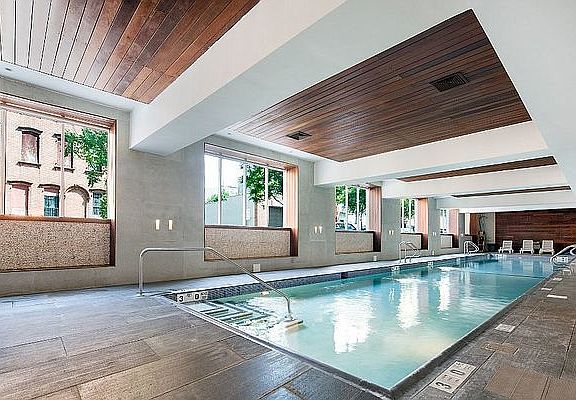 1BED 1BA with double height ceilings, lots of sunlight, private balcony, in unit washer dryer available in the heart of Brooklyn's historic Greenpoint neighborhood. The apartment features large bedroom walk-in closet and, floor to ceiling windows, natural hardwood floors, beautiful corian counter tops and top-of-the-line stainless steel appliances in the kitchen. Residential life extends beyond your apartment walls at 110 Green St., where a full-sized, heated, indoor swimming pool with sauna & steam room, state-of-the-art fitness center invite activity and friendly competition, children's playroom, resident-only solarium lounge, and sun-kissed atrium for the ideal location for morning coffee with a side of conference calls. Additional amenities include full-time concierge service, a package room, on-site parking*, and a fully furnished common roof deck with far as they eye can see views of the East River and Manhattan. Get to Midtown on the nearby G train or the 7 train in Long Island City just a hop, skip, and jump over the Pulaski Bridge. Citi Bikes are also conveniently located around the corner from 110 Green St. Note: Pictures are from a previous model for reference only and do not represent the actual apartment.