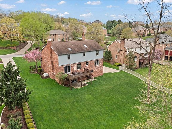 Welcome to 110 Green Valley Ln! This amazing home sits in the heart of Peters Twp. Upon opening the door, you will follow the recently updated hardwood floors as you journey throughout. The large front LR opens into the DR, complete with wainscoting and crown molding. The newly updated kitchen with country washed cabinets and soft close drawers sits centrally in the rear complete with SS appliances, granite countertops, and a sizable island. The family room has a gas fireplace along with the sliding glass door that leads out to a 20x12 deck. A first floor office adds a finishing touch. Upstairs, the master suite offers a full bath with a whirlpool tub. 3 additional bedrooms, another full bath and your laundry room complete the 2nd floor. Downstairs, you will find a spacious game room complete with wet bar and direct access to the backyard for all of your entertainment needs. Add a 2 car garage, storage shed, and the quiet neighborhood and you are sure to have found your forever home!