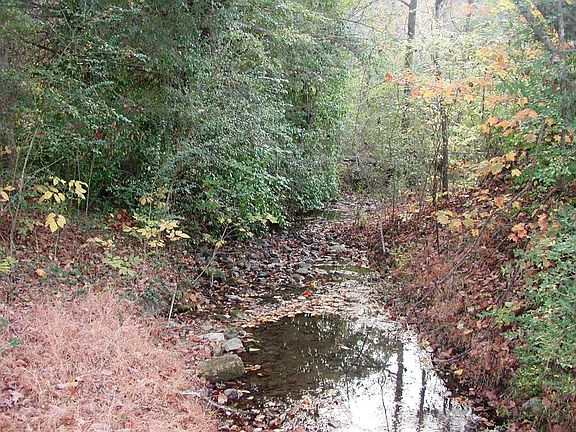Handyman needed! Good potential for home remodel, RV or mobile site, or a huge workshop on nice Unrestricted acre with CREEK! Block home with newer metal roof and newer central heat/air unit. The house has been gutted--needs a new interior. Quiet private(shared)gravel road, lovely winding creek. No septic system is present; soil map is available. Property has a well, must be reconnected in the crawl space.