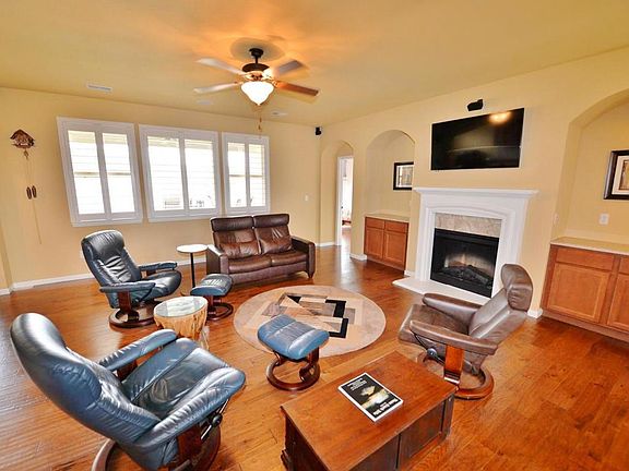 Open living all on one level in Branson Creek! Enjoy gorgeous mountain views, 4 bedrooms, 2 1/2 baths, 2233 sq. ft., 3 car garage, eat-in kitchen with island & granite counters, cozy living room with fireplace, master bedroom with cedar-lined walk-in closet, state of the art sound system throughout, all bedrooms have walk-in closets, covered back patio, nice flat backyard perfect for entertaining and more! Enjoy all the amenities Branson Creek has to offer including Clubhouse, Pool, Exercise Room & Walking Trails!