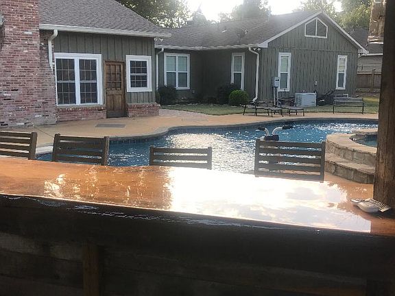Custom home in the heart of Crawfordsville, AR. Completely renovated in 2014. Entryway has custom mahogany door w/sidelights & custom design hardwood floor. Home includes 2 sitting rooms, 3 bedrooms, 1 master bath w/ whirlpool tub, walk-in shower, vanities,1 guest bath w/stainless steel tub/shower combo, vanities, kitchen, dining room, living room & laundry room/office w/water hookup for sink. Dining room includes wet bar w/ice machine. Dining, Living and Kitchen feature beaded pine vaulted ceilings. All rooms have can lighting along w/unique light fixtures & ceiling fans. Kitchen has lots of cabinet space w/enclosed electrical outlets, gas range cooktop, double electric ovens & features a beam to match the entryway of the home along w/wet bar; both having stainless steel appliances. 4"hardwood flooring throughout. Bedrooms have customized walk-in closets. Home has 2 fireplaces, one gas,1 wood burning w/gas option, plantation shutters throughout covering 6 ft energy efficient double pane windows,2 new (3 ton Ruud) Heating/AC units , Gas tank less water heater for energy consumption & alarm system w/smoke/carbon monoxide detectors included. Home features a crawlspace clean sweep program through Redeemers Group, shut down to outside air, housing 2 sump pumps & 2 de-humidifiers. Attached to home is a breezeway w/covered double carport w/beaded pine ceiling leading into a heated and cooled man-cave which includes a bar and frig, Pool house has finished room that could be an in-law suite or extra storage