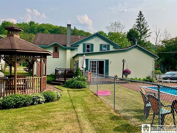Come, take a look at this immaculate and well-maintained four-bedroom three bath home, owned by the same family for 56 years. When you enter from the side porch into the kitchen, you’ll immediately notice the charm. The kitchen has heated tile floors, skylights, solid surface countertops, center island and is open to the family room with a gas fireplace & heated hardwood floors. A slider leads out to the back deck and fenced in pool area. There’s a formal dining room w/hardwood floor,& coat closet. There’s a full bath before you enter into the formal living room w/ carpet that has hardwood floors underneath. Upstairs you’ll find the primary bedroom with an en suite and plenty of closet Space. There are three more bedrooms and another full bath. Attic storage space on this level w/ pulldown stairs that lead to the attic, where there’s even more storage. Outside, you will find well landscaped yard, inground heated pool that is fenced in, a gazebo, storage shed & nice size yard. Located close to Interstate 86 w/ easy access to Allegany State Park, the Seneca Allegany casino, Jamestown, or Olean. Short drive to Little Valley, 14 miles to Holiday Valley. 1 car heated attaached garage.