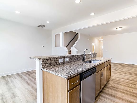 There are 3 bedrooms, 2.5 bathrooms, 1-car attached garage, new washer and dryer, and stainless-steel kitchen appliances included. The open concept kitchen with an island opens to the breakfast area and family room. The owner's suite on 2nd floor comes fitted with a sitting area, generous walk-in closet, dual vanity, and an oversized shower. The laundry room is located on the upper level. Townhome rental leasing term is for 12 months. The leasing term requires first month rent and front / end security deposits. The townhouse is unfurnished. Photo is example of same model in neighborhood and the actual floor plans.