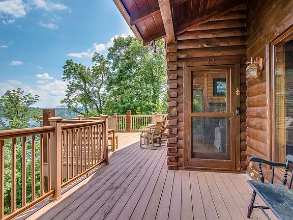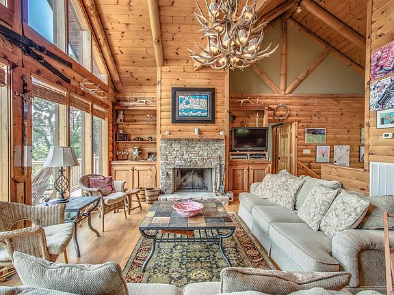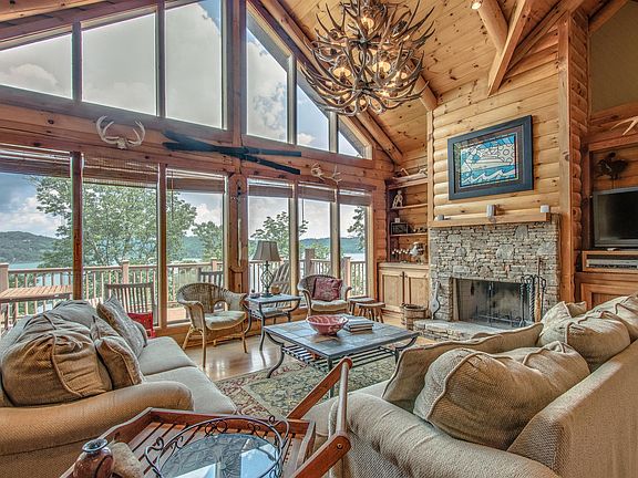 Magnificent panoramic CHL water views from this 2-story log home in Harbor Pointe. Open floor plan featuring hardwood and tile flooring, stone fp, 4 bd/3.5 ba, spacious closets/storage areas, large open deck, covered/screened deck, private gated entry, level/ample parking, climate-controlled garage (12x27) & metal roofing. Most furnishings remain.