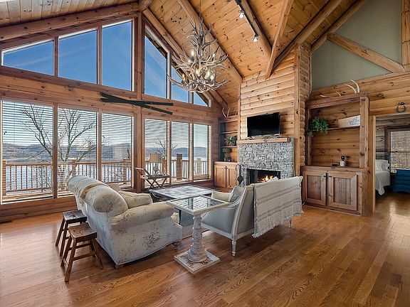 One of the most impressive panoramic lake views of CHL! Custom log home in the prestige development of Harbor Pointe. Open floor plan featuring wood and tile floors. Amazing view of the lake from the living room, kitchen , dining and screened in porch & most bedrm. Home consist of two levels, 4 bedrooms, 2 Primary suites, one on each level, 3.5 baths. Living room area has a grand stone wood burning fireplace. Enjoying setting in front of the fireplace, while enjoying this magnificent view. This home has great space indoors for entertaining as well as an abundance of outdoor space with the screened in porch or lake front open Trek deck. Home has remote automation for heat, air, alarm, locks, water shut off. Level parking, private gated driveway entrance. Home comes partially furnished.