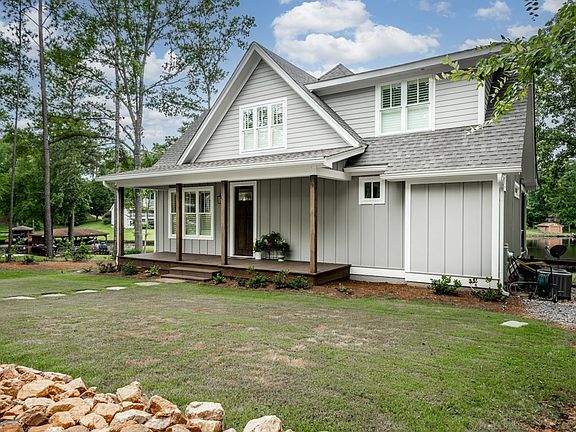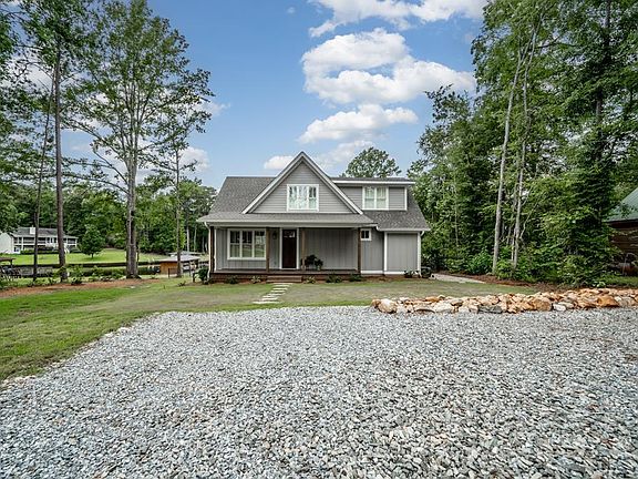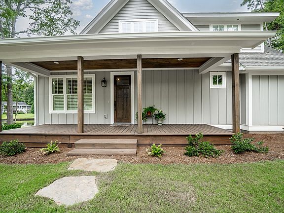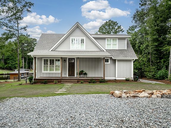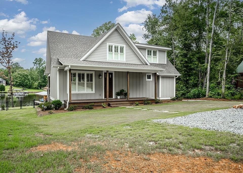 Breathtaking house on Lake Sinclair! This gorgeous lake house was constructed in 2020 and features 3 bedrooms, 2 1/2 bathrooms, covered porches with tongue and groove ceilings, zero entry tile shower in the master, vaulted living room, eat in kitchen with beautiful cabinets and quartz counter tops, Hardie board and batten siding, Bermuda sod with irrigation, fenced in yard, single stall boat house with boat lift, wood seawall, fee simple lot, and more. This cute as button cabin is a must see!